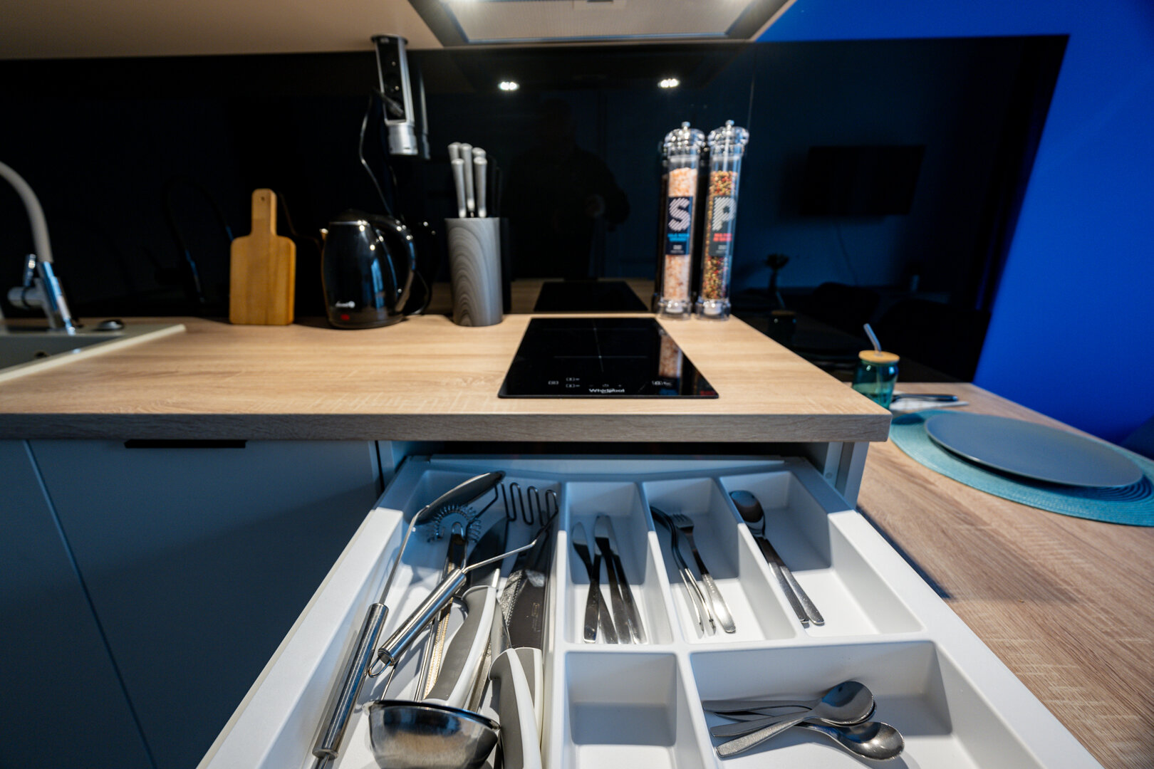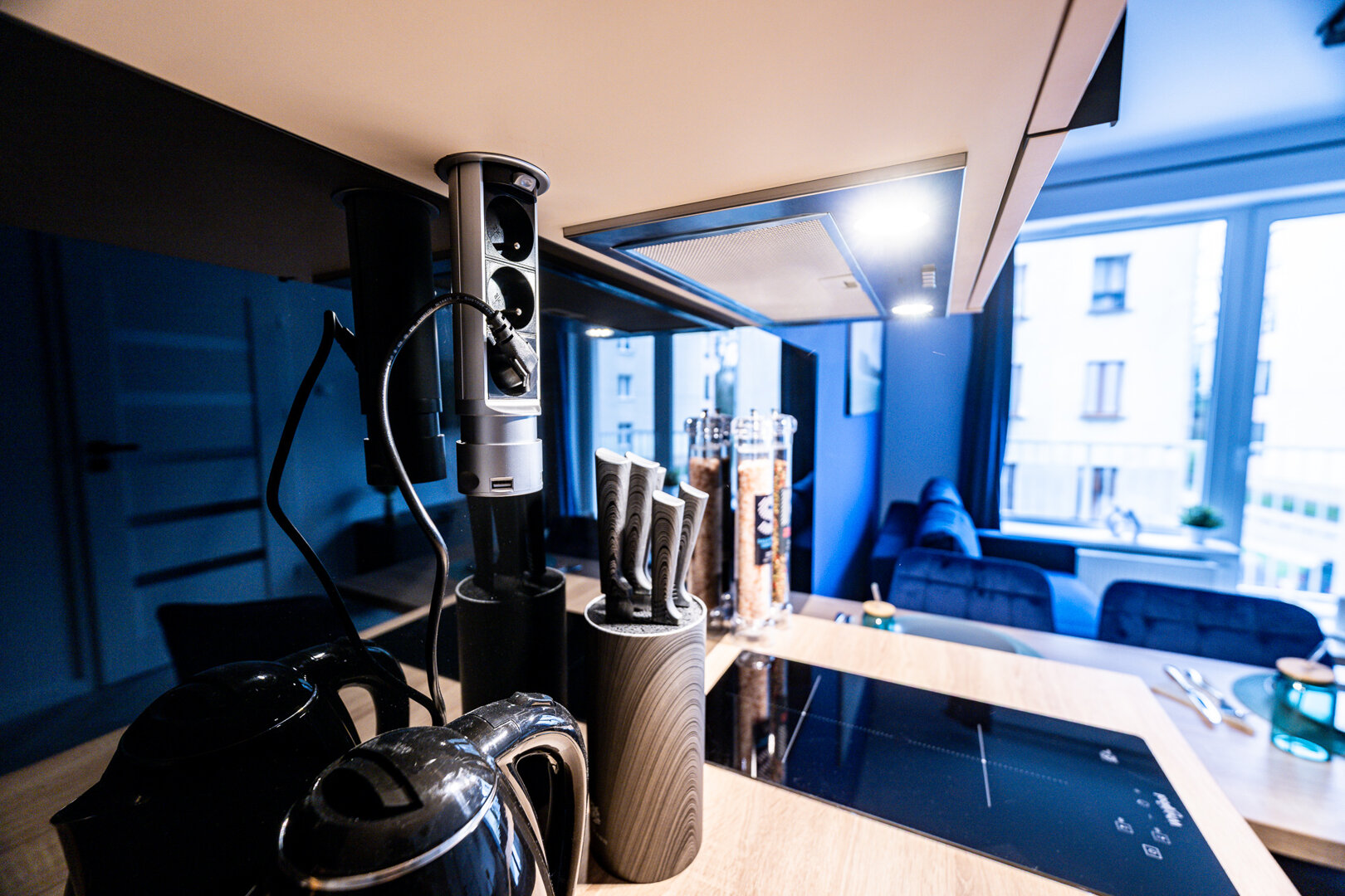 Nowoczesny apartament w sercu Łodzi, urządzony w stylu marynistycznym z dominującym kolorem głębokiego błękitu. Jasne wnętrze, w pełni wyposażona kuchnia, balkon oraz szybki internet sprawiają, że to idealne miejsce na pobyt zarówno turystyczny, jak i biznesowy. Blisko centrum i komunikacji miejskiej.