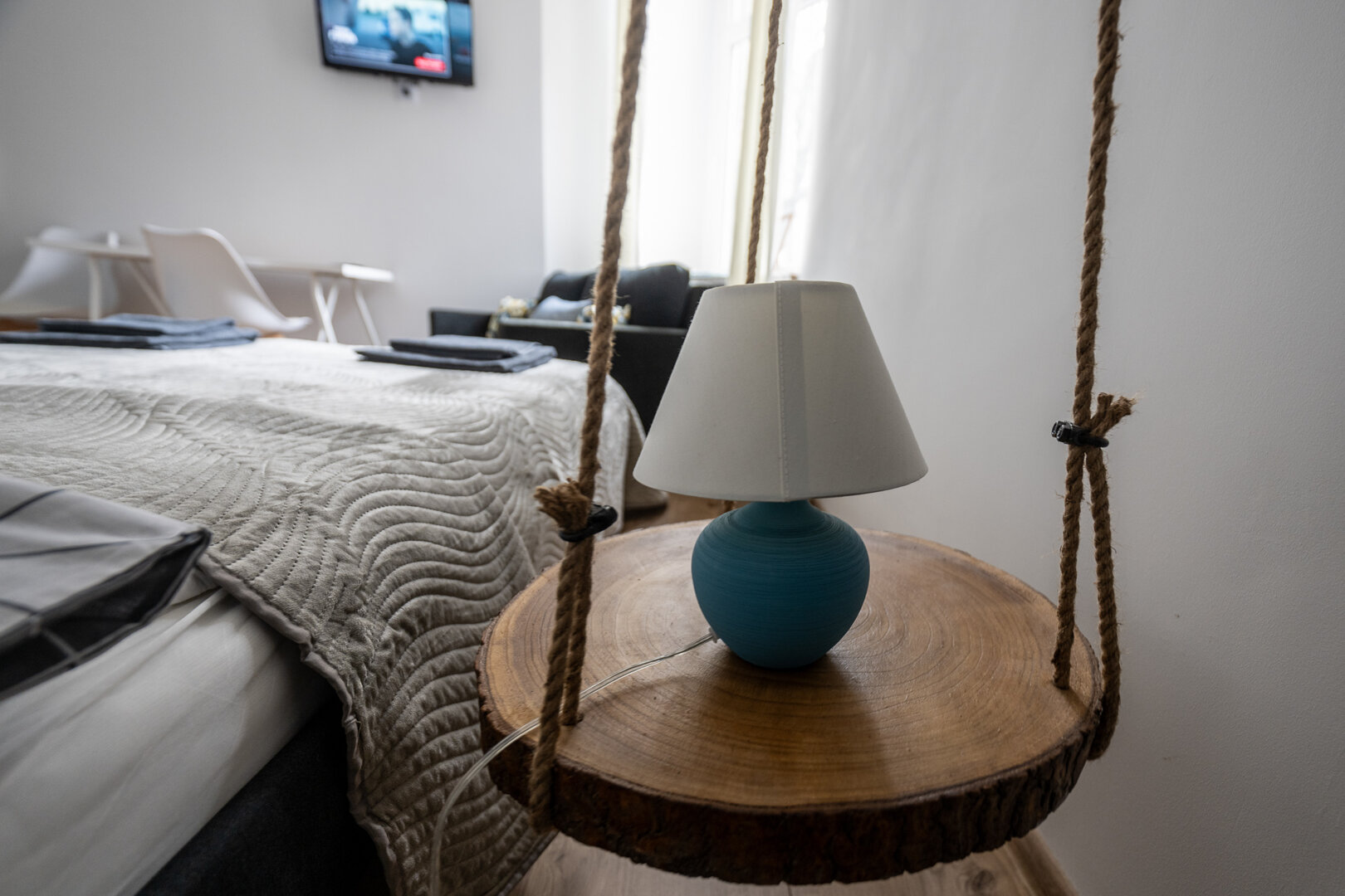 Nowoczesny apartament w sercu Łodzi, urządzony w stylu marynistycznym z dominującym kolorem głębokiego błękitu. Jasne wnętrze, w pełni wyposażona kuchnia, balkon oraz szybki internet sprawiają, że to idealne miejsce na pobyt zarówno turystyczny, jak i biz
