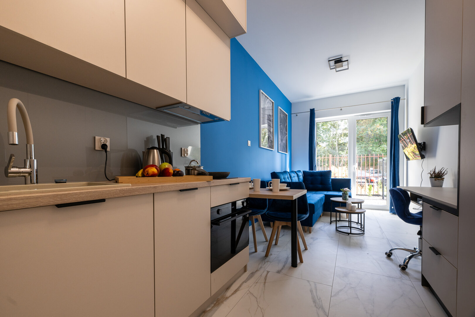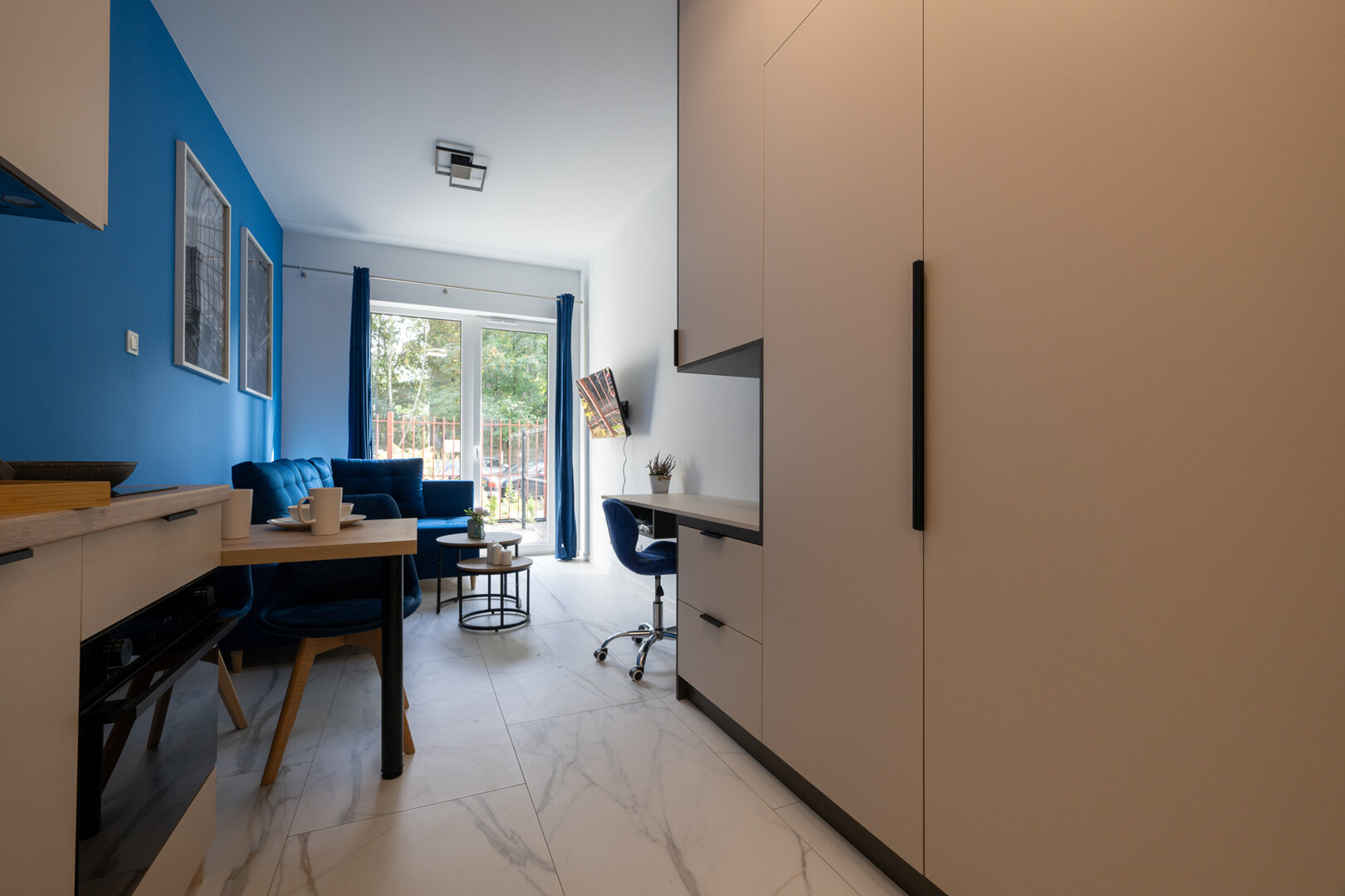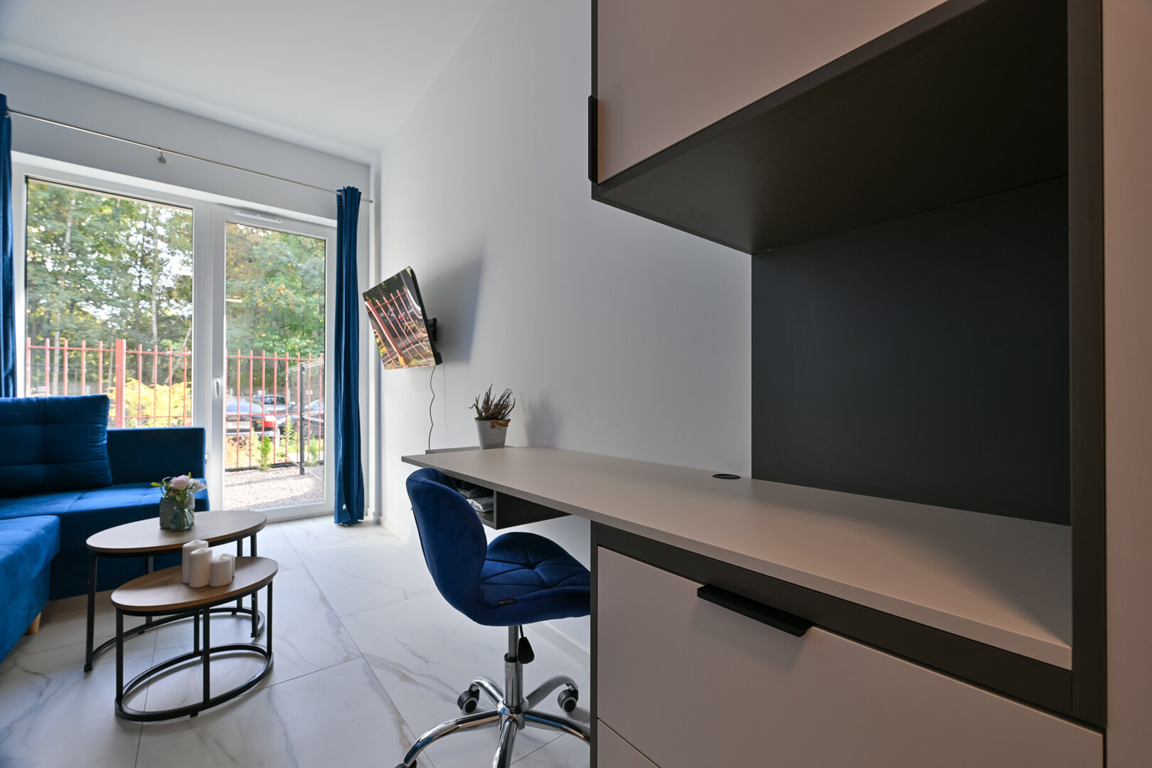 Nowoczesny apartament na parterze nowego budynku, z prywatnym ogródkiem i bezpośrednim wyjściem na zewnątrz. Idealne miejsce na poranną kawę w zieleni i spokojny odpoczynek po dniu w mieście. W pełni wyposażone wnętrze zapewnia komfort zarówno na krótki pobyt, jak i dłuższy wyjazd – szybkie Wi-Fi, Smart TV, nowoczesna kuchnia z piekarnikiem Smart. Świetna lokalizacja w centrum Łodzi, blisko Politechniki i Piotrkowskiej.